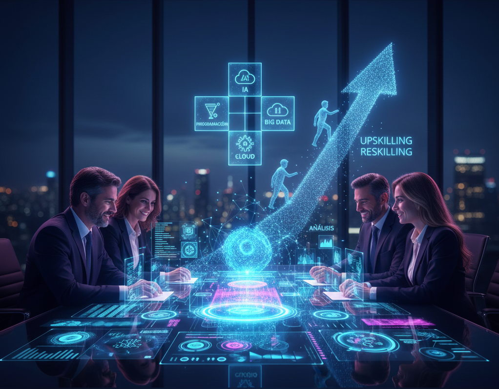 Dotar a su equipo de las competencias necesarias para afrontar el futuro tecnológico con solvencia y confianza. Trabajamos para transformar a su plantilla en el motor de la innovación de su compañía, asegurando que cada inversión en formación se traduzca en un impacto positivo y medible en el rendimiento y la competitividad empresarial.